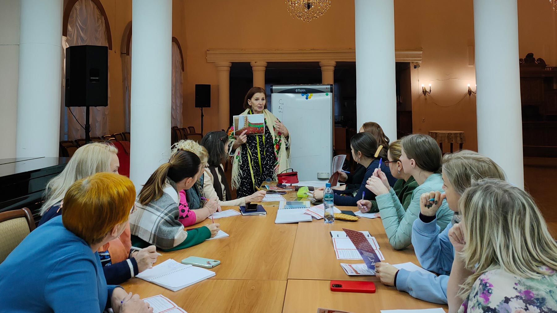 «Для каргопольского костюма характерно, в частности, пышное оформление многоцветной вышивкой, — отметила Юлия Волова. — А также декоративная отделка лоскутным шитьём женских рубах и сарафанов, и на этом мы сделаем акцент: наши участницы пошьют сарафан-пестрядинник с лоскутной отделкой».