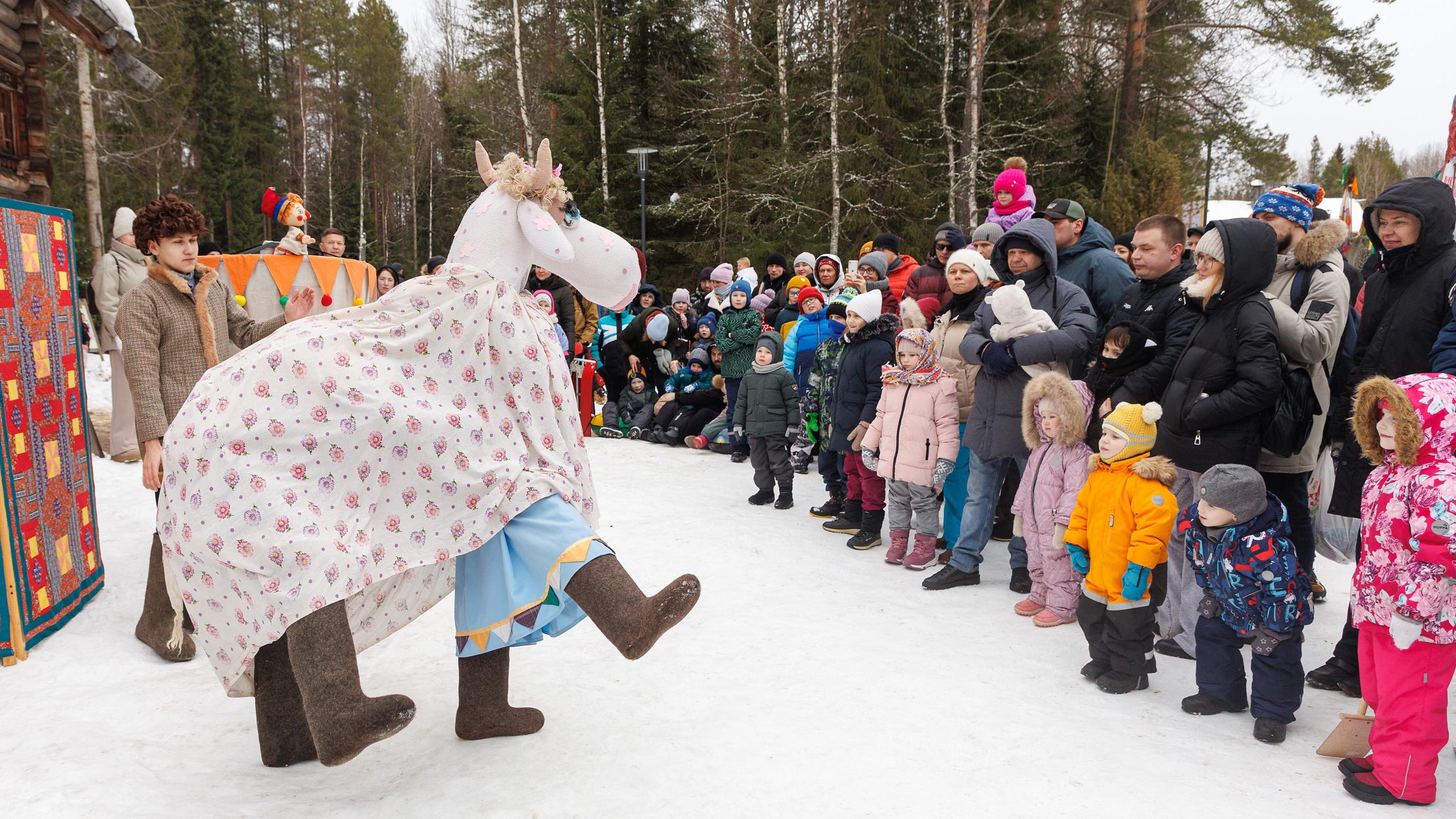 Фольклорно-этнографический театр «Новиця» покажет на центральной площади старинные масленичные обряды, состоятся деревенские игрища и кулачные бои. На детской масленичной площадке — слева от центрального входа в музей-заповедник — впервые развернутся детские, «воробьиные», бои — состязания зимы с весной. Здесь всех ждут народные игры и детский ледяной столб. Ледяной столб для взрослых будет установлен у дома Попова. Около дома Кирилова гостей повеселит кукольный балаганчик с участием Петрушки.