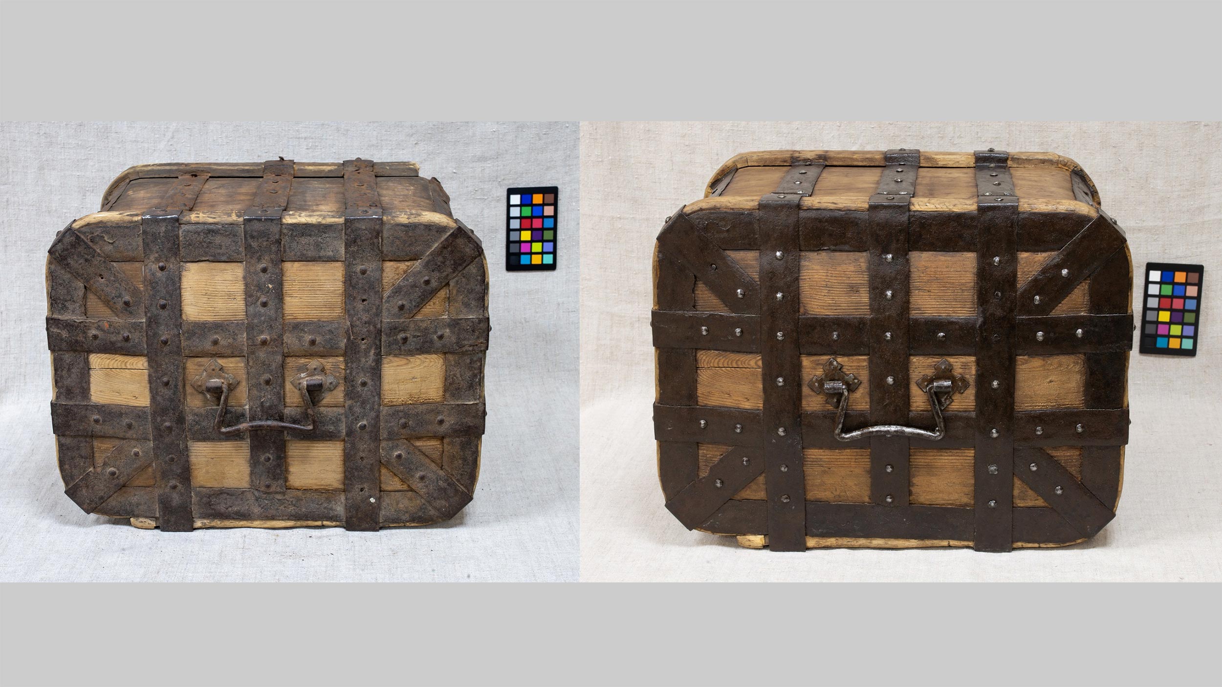 Так, художником-реставратором произведений из дерева Верой Чекиной отреставрирован лубяной короб, окованный железом. У этого предмета XVIII века была утрачена часть нижнего обода, деформированы полосы железа на основании, наблюдалась сильная коррозия металла, потёртости древесины и луба. В результате проведённого комплекса реставрационных мероприятий устранена деформация металлических полос на основании, удалены продукты коррозии на металле и загрязнения со слюды, заделаны сквозные широкие трещины, выполнены тонировки реставрационных дорезок и нанесено защитное покрытие.