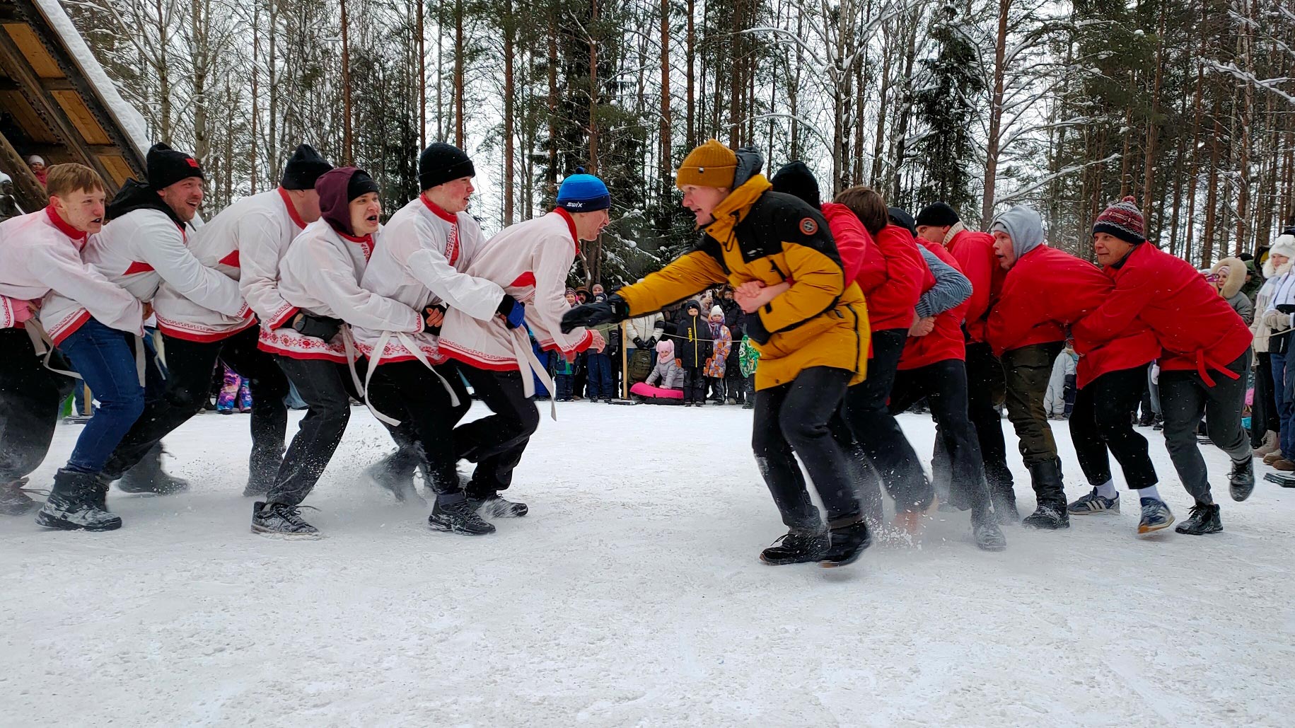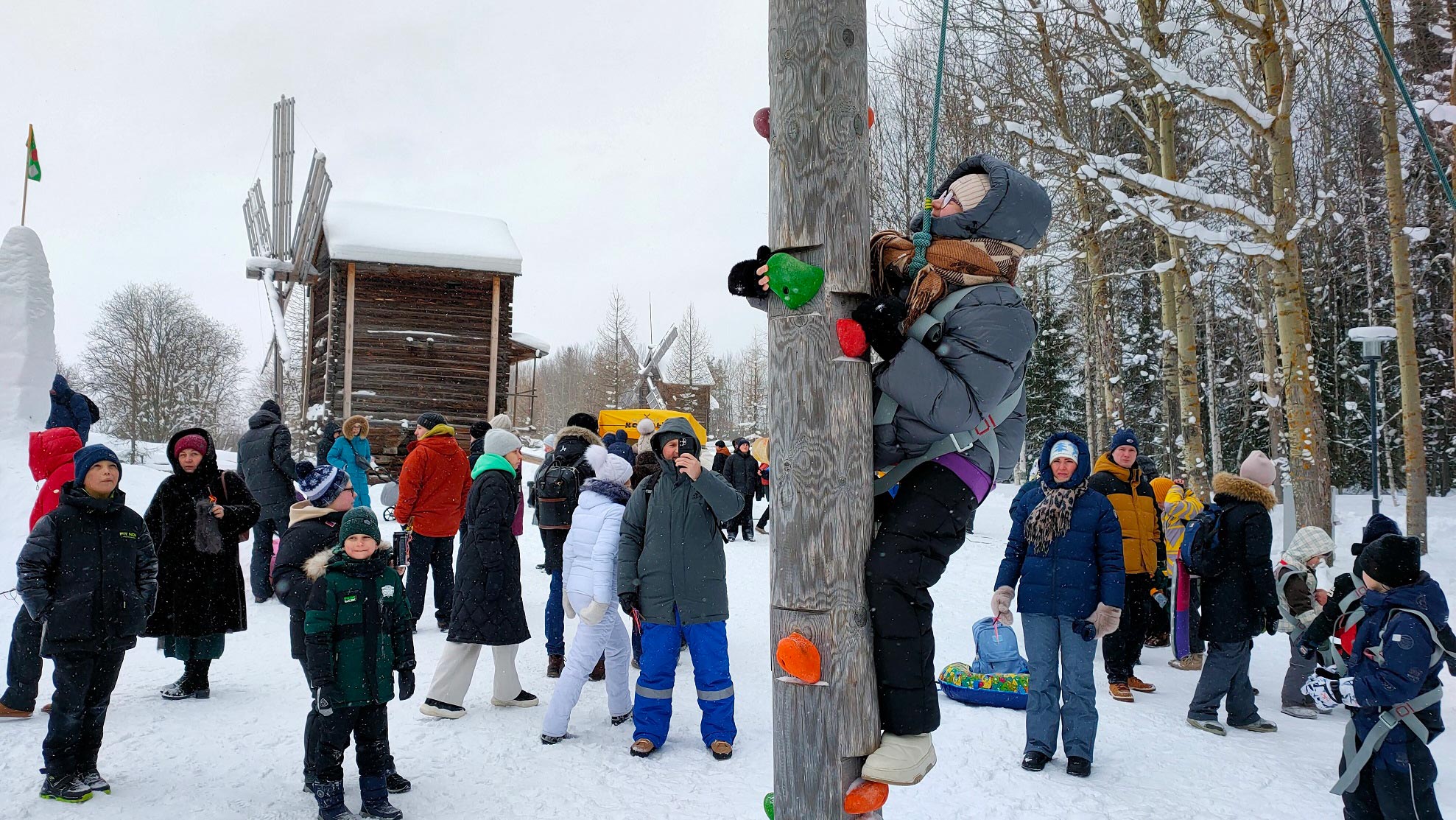 Многие приехали на Масленицу, чтобы поддержать покорителей ледяного столба: в этой масленичной забаве у дома Попова приняли участие одна девушка и 35 мужчин из Архангельска, Северодвинска, Новодвинска, Вологды и посёлка Боброво Приморского муниципального округа. Один из главных призов — сёмгу весом 6,5 кг — выиграл Евгений Крюков.