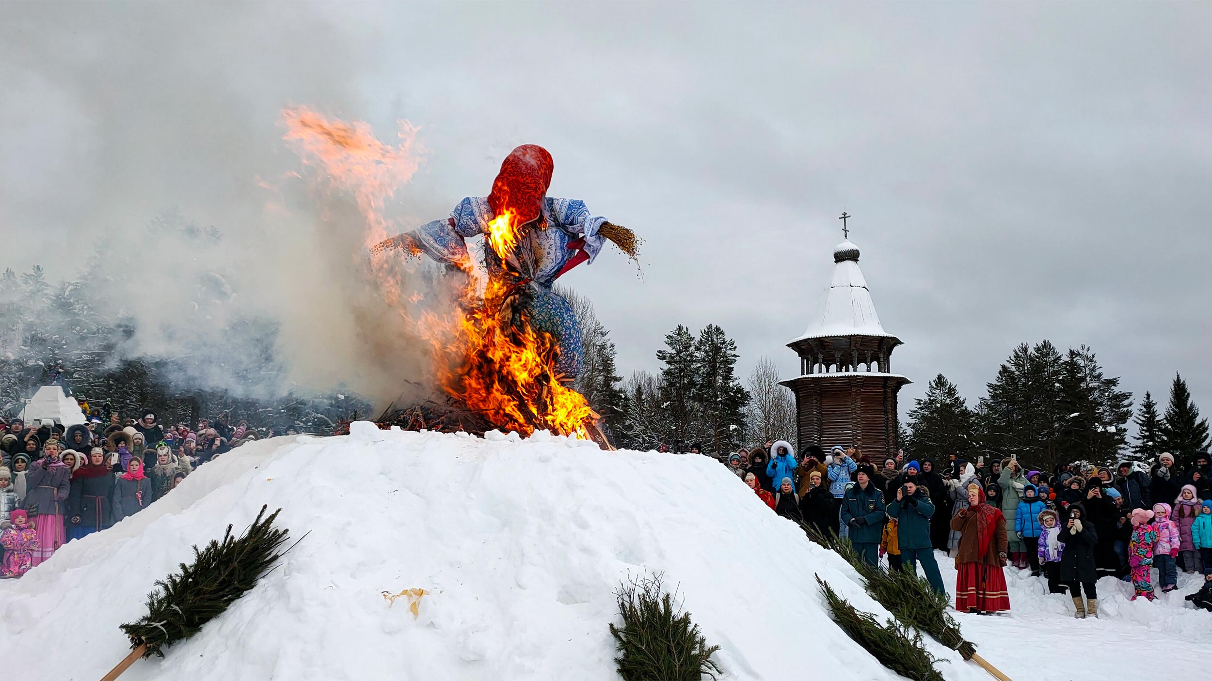 Самой зрелищной частью праздничной программы традиционно стал обряд прощания с Масленицей и масленичный костёр на угоре.