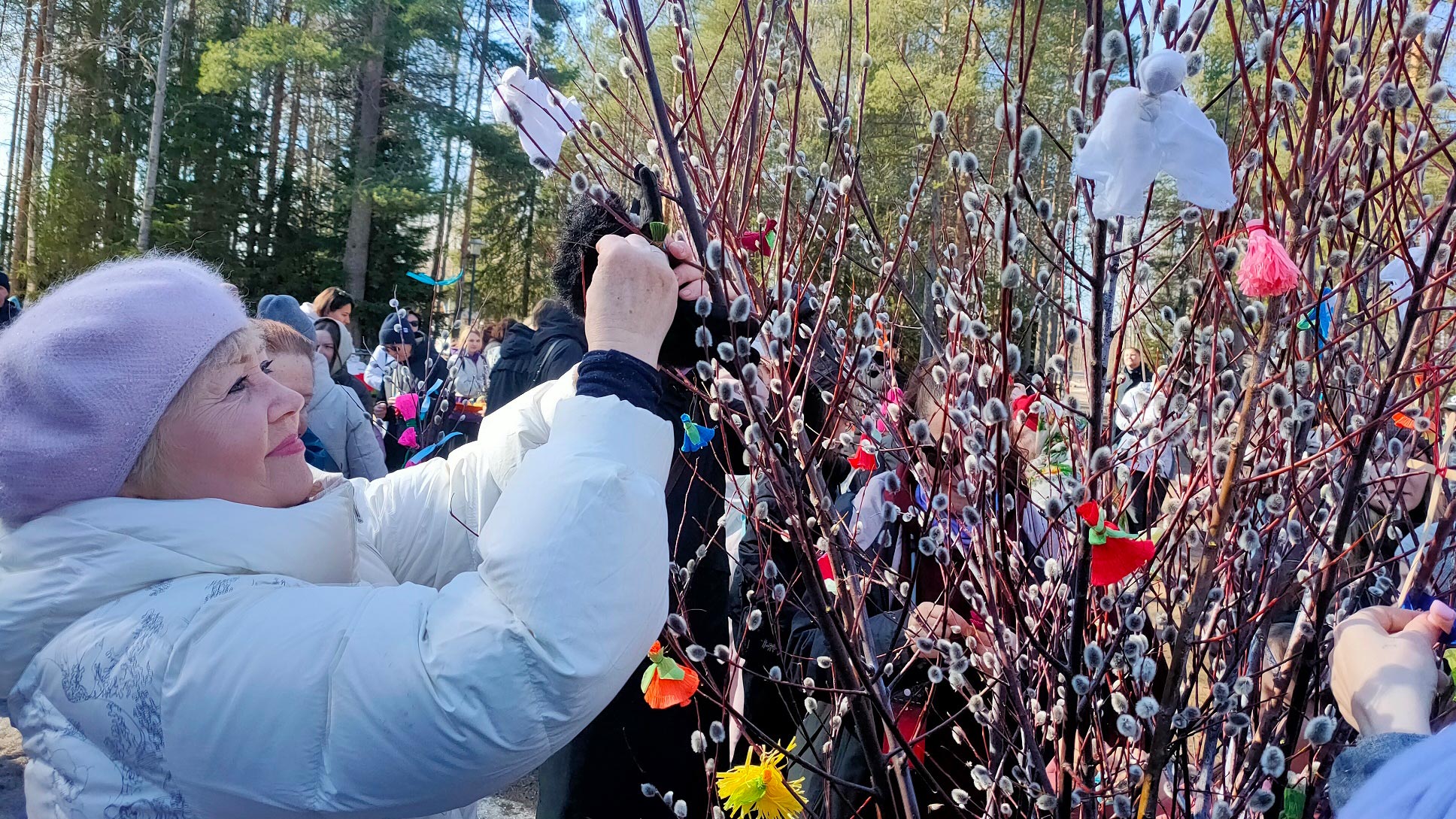 В творческой мастерской состоялись мастер-классы по украшению вербного букета и выпечке пряничных птичек. Рядом с центральной площадью развернулась ярмарка народных ремёсел, около дома Третьякова работала игровая площадка.