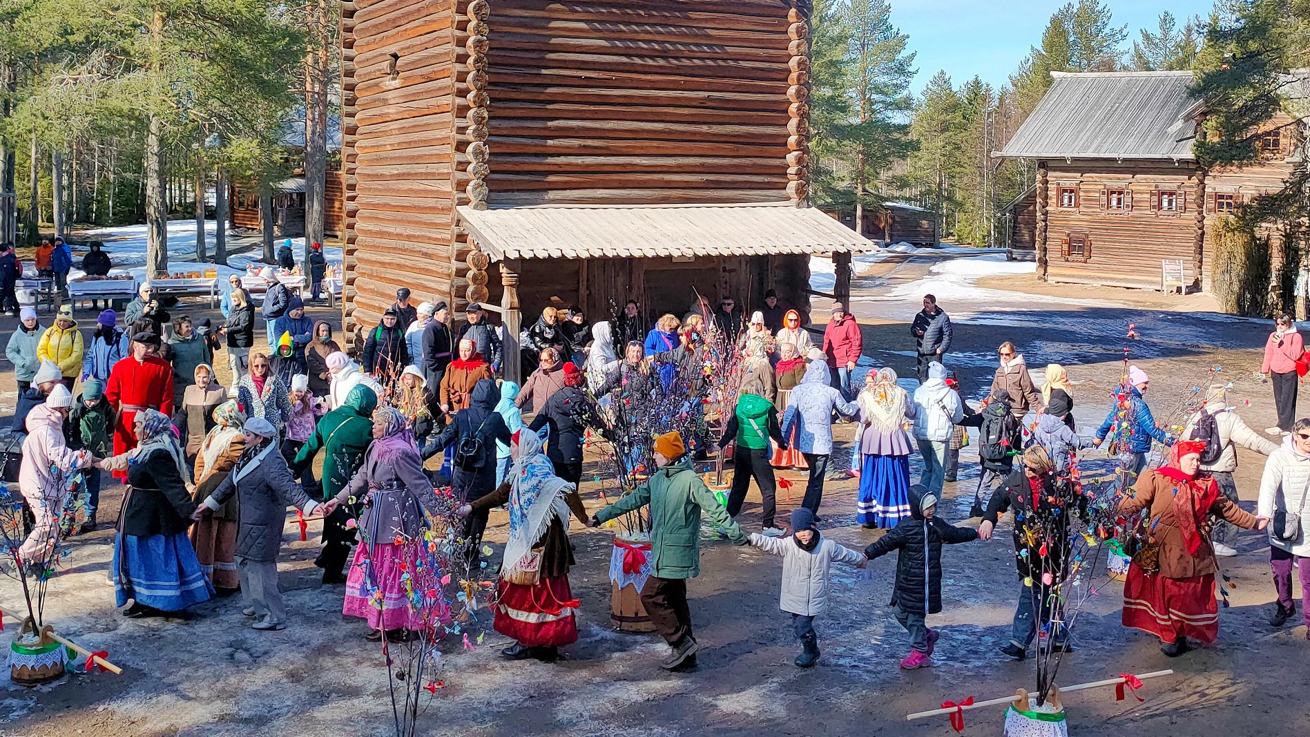 Посетители музея-заповедника увидели связанные с этим весенним праздником народные традиции, бытовавшие в северной деревне: обряды «Вербохлёст» и «Закликание весны», приняли участие в украшении вербных деревьев и шествии «Вербного поезда» вместе с артистами фольклорно-этнографического театра «Новиця» и детской фольклорной группы «Особинки», а также попробовали вербных барашков и угостились вербной кашей из русской печи.
